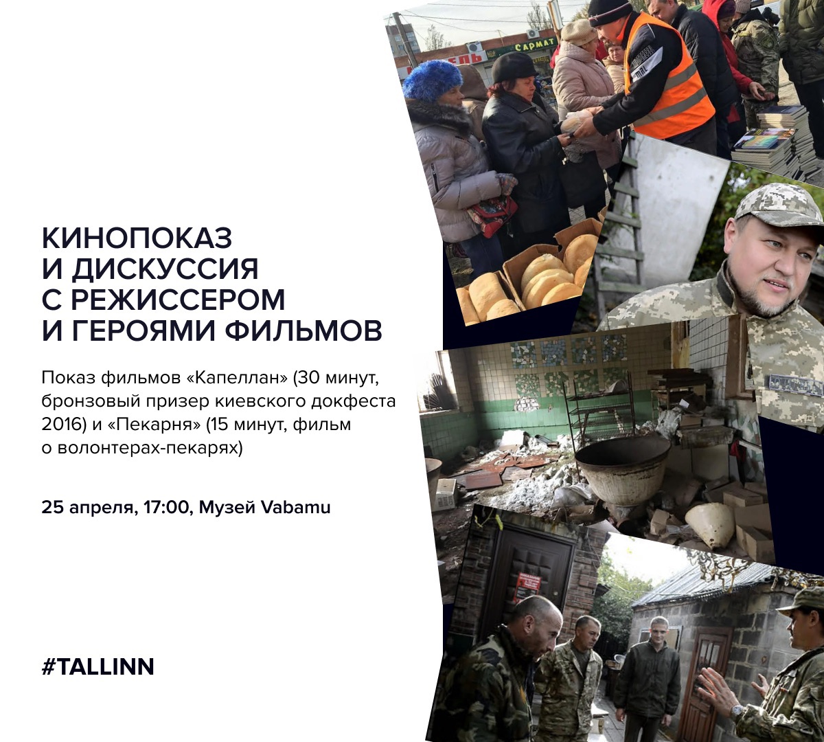 Näitame filme „Kapellan“ (30 minutit, Kiievi dokfilmifestivali 2016. aasta pronksauhinna võitja) ja „Pagarikoda“ (15 minutit, film vabatahtlikest pagaritest).